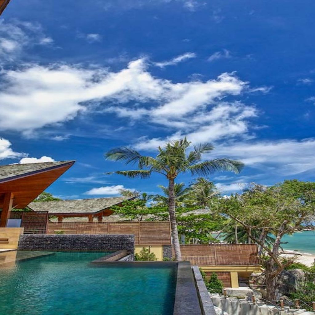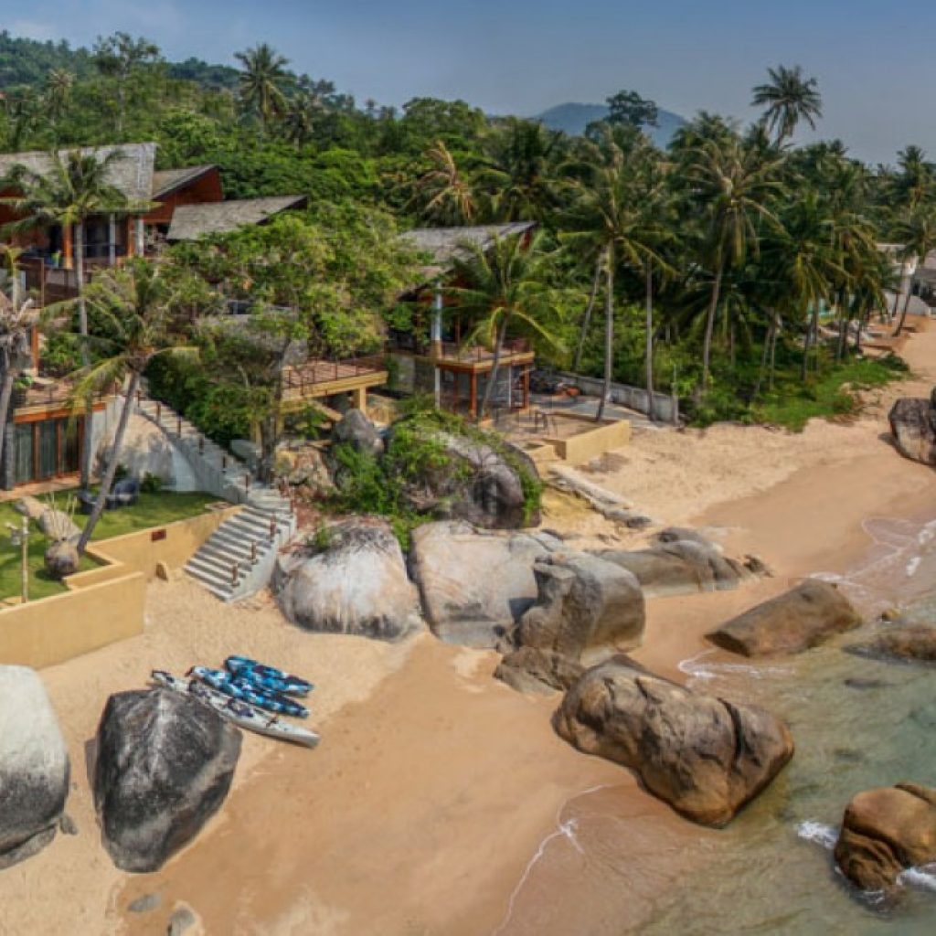 Baan Hinta, along with Baan Hinyai is a modern beach front development features two epic villas that are setting up a new benchmark for architecture and interior creations on the Samui island. This masterpiece uniquely sits on a dramatic sloping site with a series of giant granite boulders cascading into the sea.