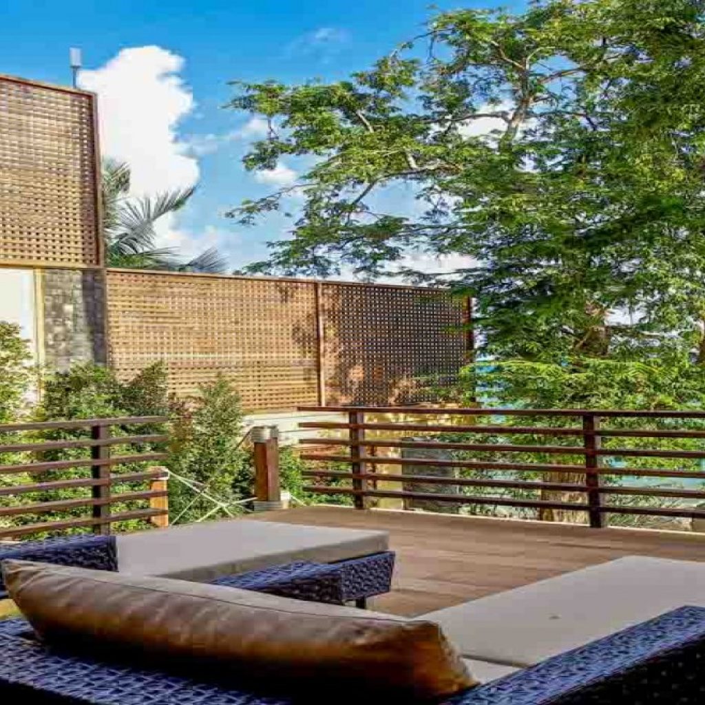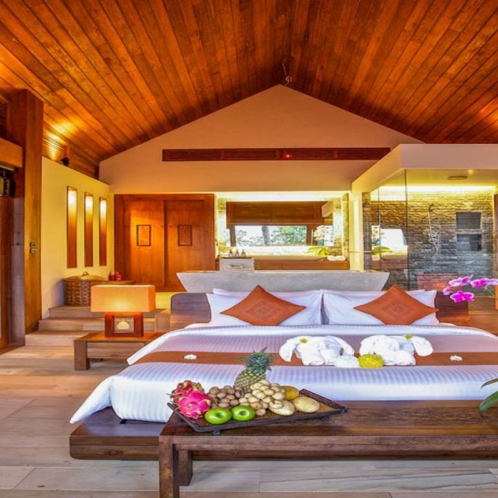 Noted for breath-taking architecture, this five-bedroom villa features a spacious pool and a luxurious lounge sala. The well-appointed beachside abode enjoys a prime location for unparalleled privacy. The various living, dining, and relaxation spaces enjoy amazing views of the quiet beach, which guests have direct access to. Water sports and sunbathing naturally become a daily pleasure here.