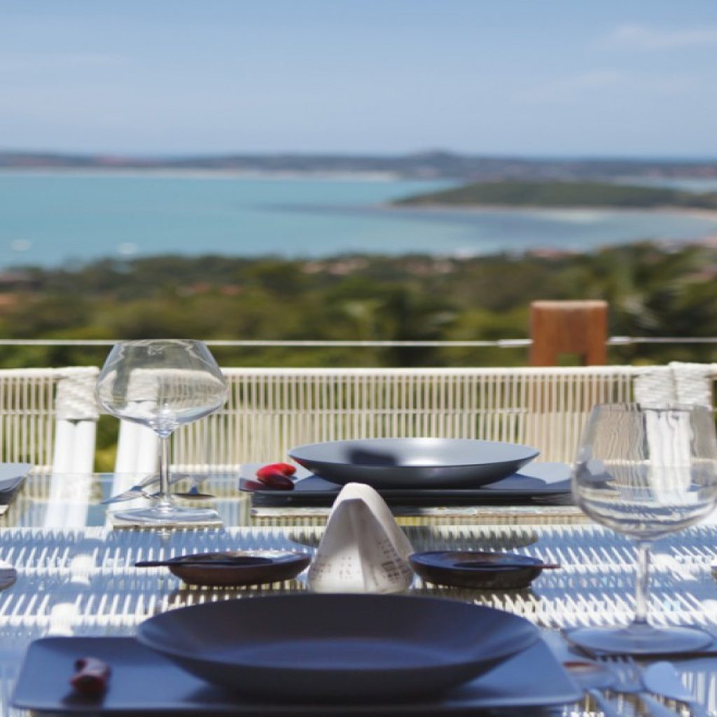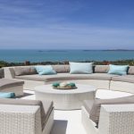 Magnificent open-plan living area with high-vaulted ceilings and concertina doors opening onto the dining terrace; very spacious and bright state-of-the-art kitchen opening onto the sea view terrace; four immaculately appointed double bedroom suites, all located on the villa’s mid-level and each with a deluxe ensuite bathroom; master suite features an outdoor circular terrazzo bath with candle lit chandelier.