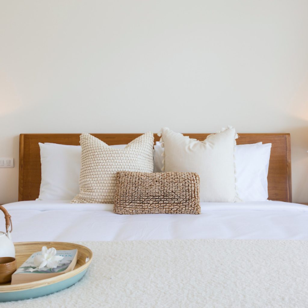 Two master bedrooms and the third bedroom are located on the upper floor, while a fourth bedroom on the pool level has its own private