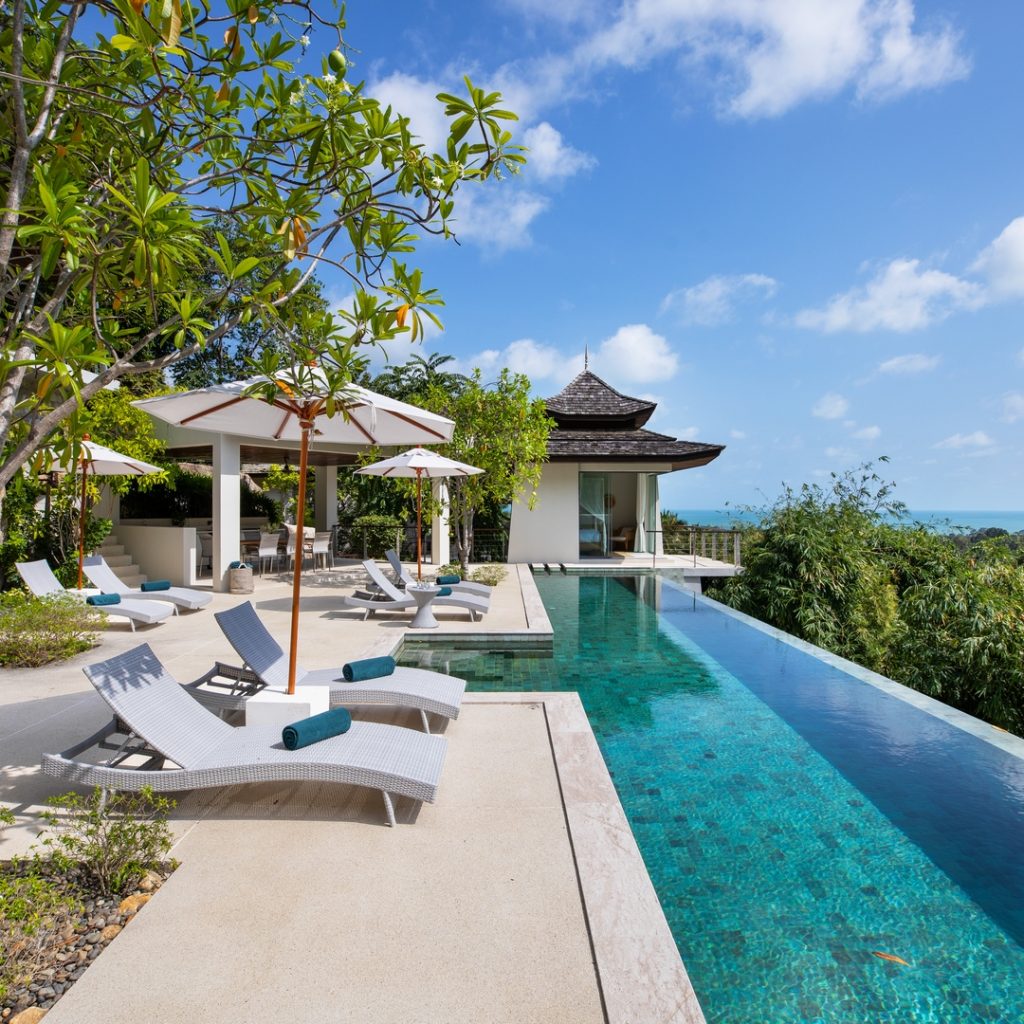 Walking out from the back of the main living area you find the open area which is home to the 88 sqm lap pool surrounded by plenty of entertainment area. Overlooking the pool is the large Sala designed for meditation and yoga, where guests can reset their mind.