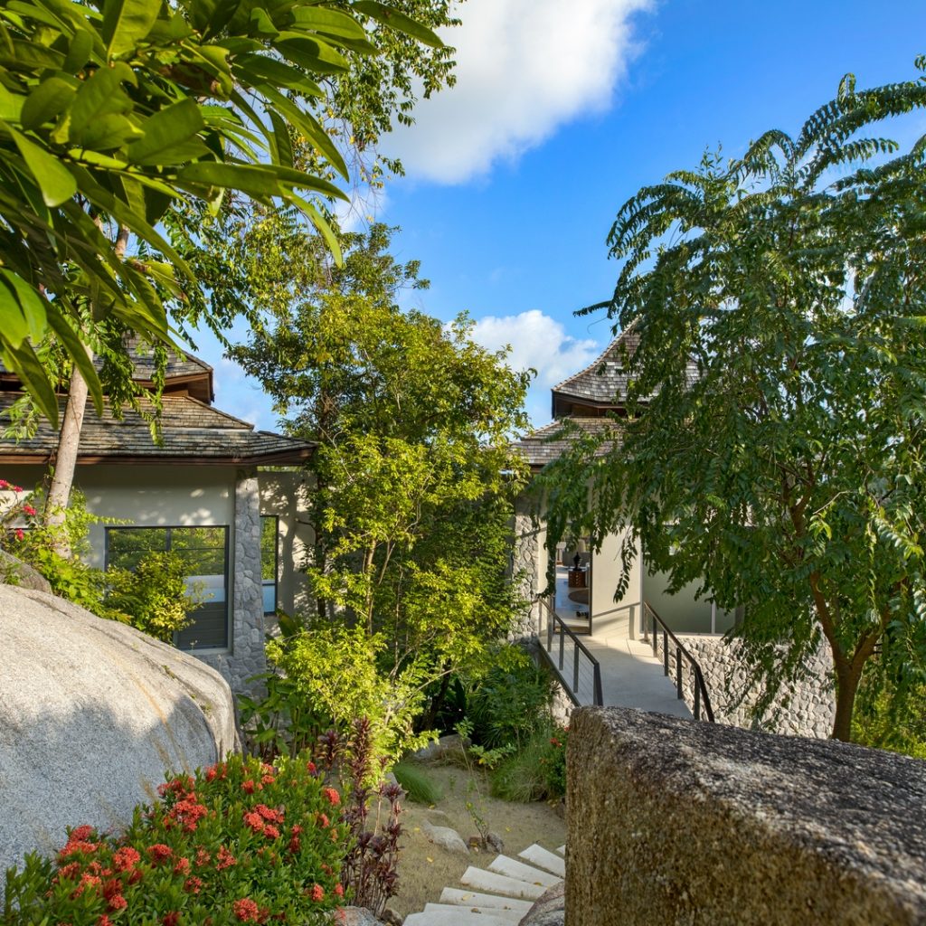 The Samahita Residence is an exclusive estate following on from their world famous Yoga Retreat on Laem Sor beach just a few minutes drive away. Because of this all the neighbours have designed and built their properties with health, wellness and nature in mind.