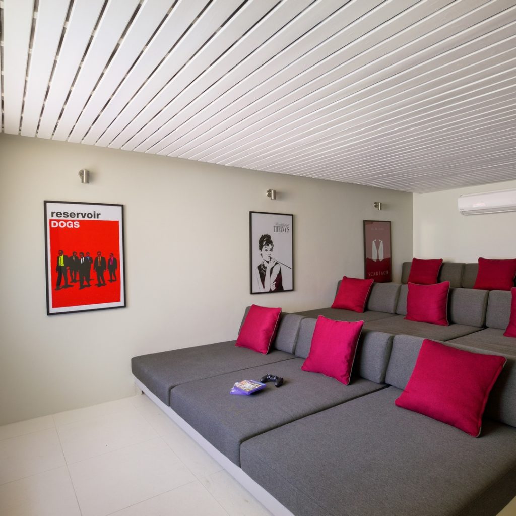 Spread throughout the villa is 6 full bedrooms with en-suite bathrooms, as well as a large games room/cinema, massage room and staff quarters.